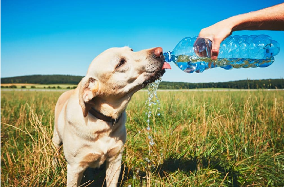 Your dog is dehydrated when he is panting, has glazed eyes, feeling of weakness, and constantly drooling. Control the dog’s temperature by transferring him to a temperature-controlled area. Put water a towel soaked in cold water to lower the dog’s temperature.