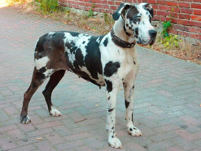 The most common colors you’ll see in Great Danes include black-masked fawn (golden), tiger-striped black and fawn (brindle), grayish steel blue, black, white randomly patched with black (harlequin), black-and-white with solid black blankets (mantle). The breed’s coat sheds too much, but it’s easy to maintain with a regular brushing routine. Be sure to use a bristle brush, and brush your dog’s coat regularly to keep it clean and healthy, which makes bathing needs less frequent; shampoo should be used as needed.