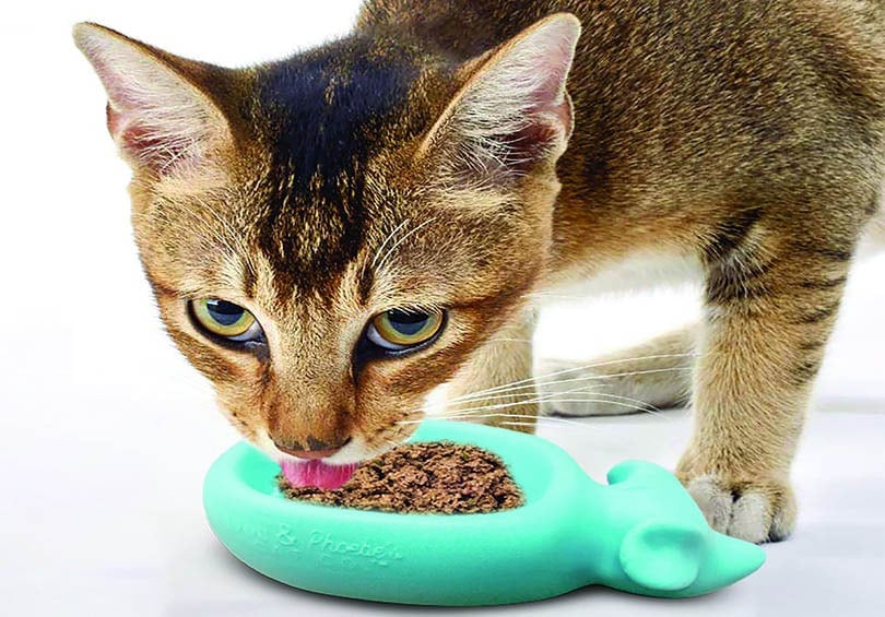 - In addition, you can find an alternative food bowl for your beloved feline. Serve your cat’s food on a 9×13-inch baking pan. Why is this big? Because you can spread out the food items on the pan, leaving a few spaces or gaps between the items. This condition will help slow down your cat’s nibble time.
